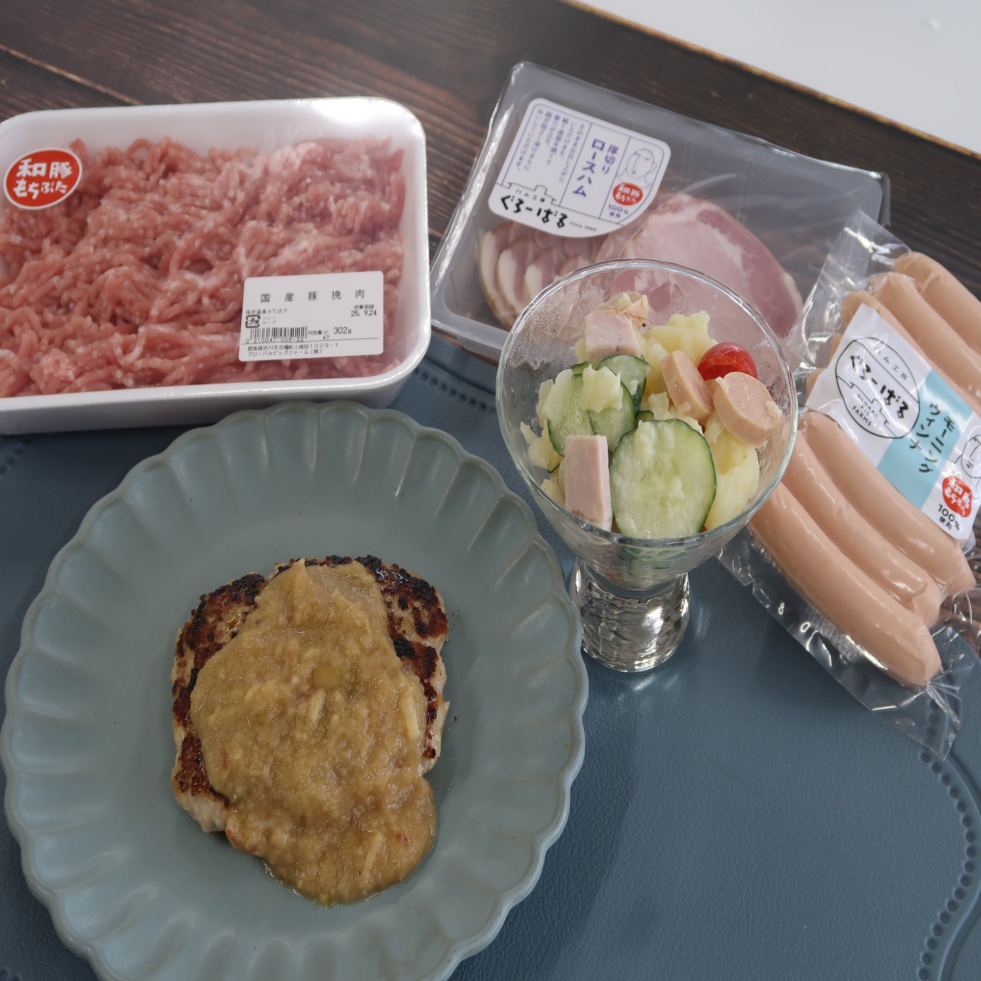 使用した『ひき肉』と『ロースハム厚切り』『モーニングウィンナ』はオンラインショップからご購入いただけます。